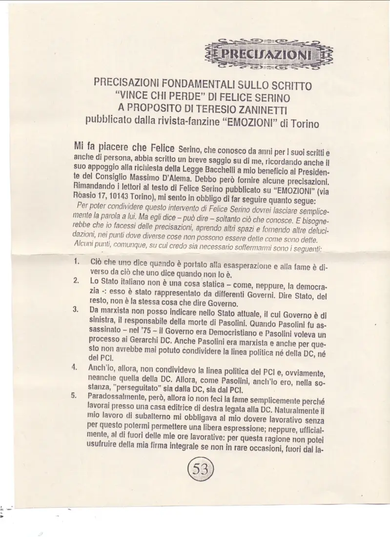Dunque, vogliamo ribadirlo: un uomo che non sa "barare con l'universo". Anche lo scrivente, che ha conosciuto Zaninetti nell'aprile '97, ha firmato ben volentieri insieme a molti altri uomini di cultura, per fargli ottenere i benefici della legge Bacchelli. Una volta tanto si riuscirà ad alleviare la pena di un poeta senza dover ricorrere all'elemosina e respingendo la soluzione estrema del suicidio?